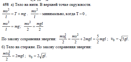 Какую минимальную скорость в горизонтальном направлении необходимо сообщить телу массой m: а) подвешенному на конце нити длиной l; б) закрепленному на конце жесткого невесомого стержня длиной l, чтобы оно описало окружность в вертикальной плоскости? Потерями энергии пренебречь