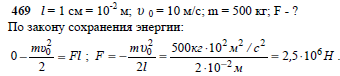 От удара копра массой 500 кг, свободно падающего с некоторой высоты, свая погружается в грунт на 1 см. Определите силу сопротивления грунта, считая ее постоянной, если скорость копра перед ударом равна 10 м/с. Массой сваи пренебречь