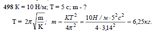 Демонстрационная пружина имеет постоянную жесткость, равную 10 Н/м. Какой груз следует прикрепить к этой пружине, чтобы период колебаний составлял 5 с?