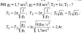 Ускорение свободного падения на Луне равно 1,7 м/с2. Каким будет период колебаний математического маятника на Луне, если на Земле он равен 1 с? Зависит ли ответ от массы груза?