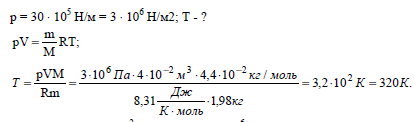 V = 40 л = 40 ⋅ 10-3 м3; m = 1,98 кн; М = 4,4 ⋅ 10-2 кг/моль