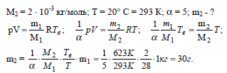 Баллон, содержащий 1 кг азота, при испытании взорвался при температуре 350 °С. Какое количество водорода можно хранить в этом баллоне при 20 °С, имея пятикратный запас прочности?