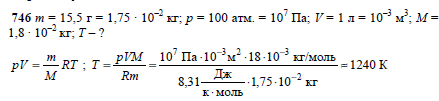 До какой температуры надо нагреть запаянный шар, содержащий воду массой 17,5 г, чтобы шар разорвал ся, если известно, что стенки шара выдерживают давление не более 100 атм., а его объем 1 л?