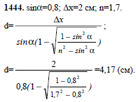 Узкий параллельный пучок света падает на плоскопараллельную стеклянную пластинку под углом а, синус которого равен 0,8. Вышедший из пластинки пучок оказался смещенным относительно продолжения падающего пучка на расстояние 2 см. Какова толщина пластинки, если показатель преломления стекла равен 1,7?