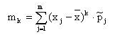 Дано статистическое распределение выборки с числом вариант m. Выборочная средняя равна x. Тогда статистическоецентральный момент k-порядка находится по формуле