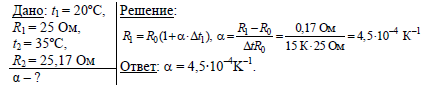 Сопротивление проводника при 20 °С равно 25 Ом, а при 35 °С — 25,17 Ом Найдите температурный коэффициент сопротивления