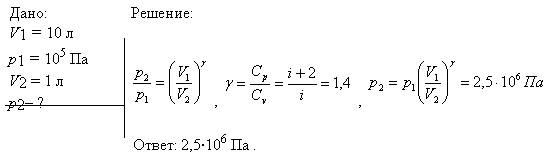 Воздух занимающий объем 10 литров при давлении 1 ат был адиаботно сжат до обьема 1 л. Под каким давлением находится воздух после сжатия?