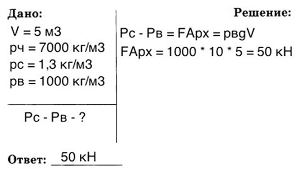 На сколько вес чугунной болванки объёмом 5 м3 в воздухе больше её веса в воде? Плотность чугуна 7000 кг/м3,плотность воздуха 1,3 кг/м3 , плотность воды 1000 кг/м3.