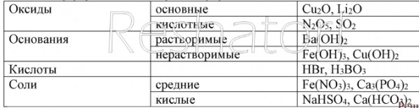 Даны химические формулы веществ: HBr, NaHSO₄, Cu₂O, Fe(OH)₃, Fe(NO₃)₃, Ca(HCO₃)₂, N₂O₅, H₃BO₃, Li₂O, SO₂, Ba(OH)₂, Ca₃(PO₄)₂, Cu(OH)₂. Начертите в тетради таблицу и поместите формулы в соответствующие графы