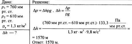 Какова высота горы, если у подножия горы барометр показывает 760 мм рт.ст., а на вершине горы – 610 мм рт.ст. (плотность воздуха считать равной 1,3 кг/м3 )?