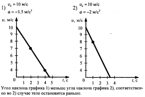 1) V0 = 10 м/с, а = - 1,5 м/с2;