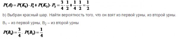В первой урне: три красных, один белый шара. Во второй урне: один красный, три белых шара. Наугад бросают монету: если герб – выбирают из первой урны, в противном случае– из второй.