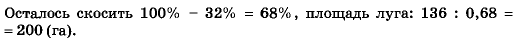 Скосили 32% луга, после чего осталось скосить еще 136 га. Найдите площадь луга.