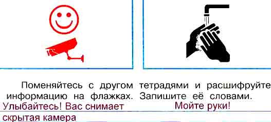 Придумайте условные знаки для передачи информации. Нарисуйте их на флажках.
