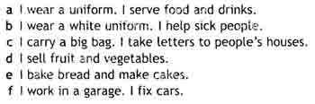 b) I wear a white uniform. I help sick people. — Я ношу белую уни­форму. Я помогаю больным людям. — Медсестра