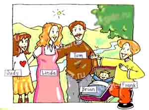 Hello, I’m Frank. This is my mother and father. Their names are Linda and Tom. Judy is my big sister and Brian is my little brother. We are a happy family!