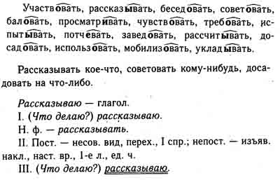 Участвую, рассказываю3, беседую, советую, балую, просматриваю, чувствую, требую, испытываю, потчую, заведую, рассчитываю, досадую, использую, мобилизую, укладываю.