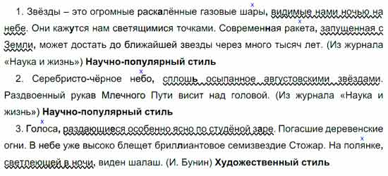 Определите стили речи данных отрывков. Вставьте пропущенные буквы. Расставьте знаки препинания при причастных оборотах, графически их выделяя и знаком Х отмечая определяемое слово.