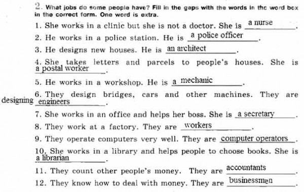 What jobs do some people have? Fill in the gaps with the words in the word box in the correct form. One word is extra.
