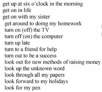 Fill in the webs with the words from the boxes and translate these phrasal verbs.