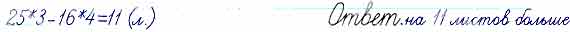 Для кружка «Умелые руки» купили 3 набора цветной бумаги, по 25 листов в каждом, и 4 набора белой бумаги, по 16 листов в каждом. На сколько больше купили листов цветной бумаги, чем листов белой? Реши задачу выражением