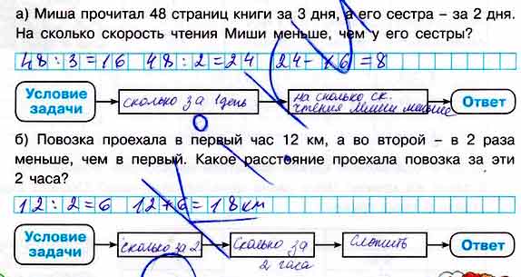 а) Миша прочитал 48 страниц книги за 3 дня, а его сестра - за 2 дня. На сколько скорость чтения Миши меньше, чем у его сестры?