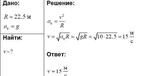 С какой скоростью мотоциклист должен проезжать середину выпуклого моста радиусом 22,5 м, чтобы центростремительное ускорение равнялось ускорению свободного падения?