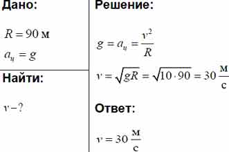 С какой скоростью должен ехать автомобиль по выпуклому мосту с радиусом кривизны 90 м, чтобы центростремительное ускорение его движения было равно ускорению свободного падения?