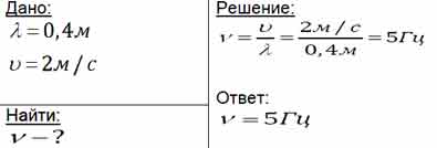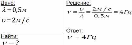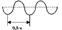 Учитель   продемонстрировал   опыт по    распространению    волны    по длинному  шнуру.   В  один  из  моментов времени форма шнура оказалась такой, как показано на рисунке.   Скорость   распространения колебания по шнуру равна 2 м/с. Определите частоту колебаний.