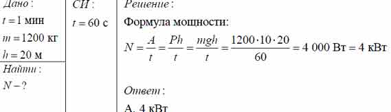 Вычислите мощность насоса, подающего ежеминутно 1200 кг воды на высоту 20 м.