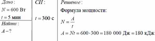 Какую работу может совершить двигатель мощностью 600 Вт за 5 мин?