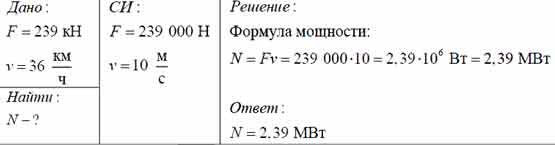 Электровоз, развивая усилие 239 кН, движется с постоянной скоростью 36 км/ч. Определите развиваемую при этом мощность.