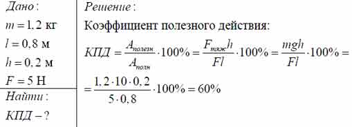 Груз, масса которого 1,2 кг, ученик равномерно переместил по наклонной плоскости длиной 0,8 м на высоту 0,2 м. При этом перемещении сила, направленная параллельно наклонной плоскости, была равна 5 Н. Какой результат должен получить ученик при вычислении КПД установки?