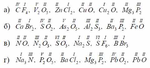 а)  CF4, V2O5, ZnCI2, СuО, Cu2O, Mg3P2;