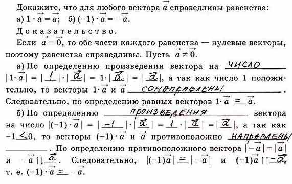 Докажите, что для любого вектора а справедливы равенства: а) 1 * а = а;   б) (-1) * а = - а.