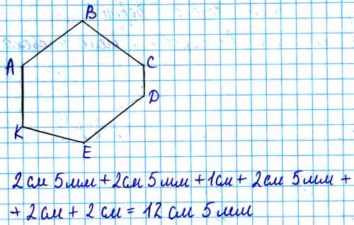 Начертите в тетради пятиугольник и обозначьте его вершины. Выполнив необходимые измерения, найдите периметр пятиугольника