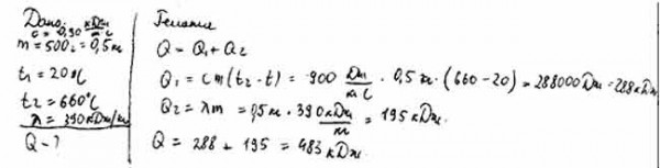 Какое количество теплоты потребуется для плавления 500 г алюминия, взятого при температуре 20 °С?