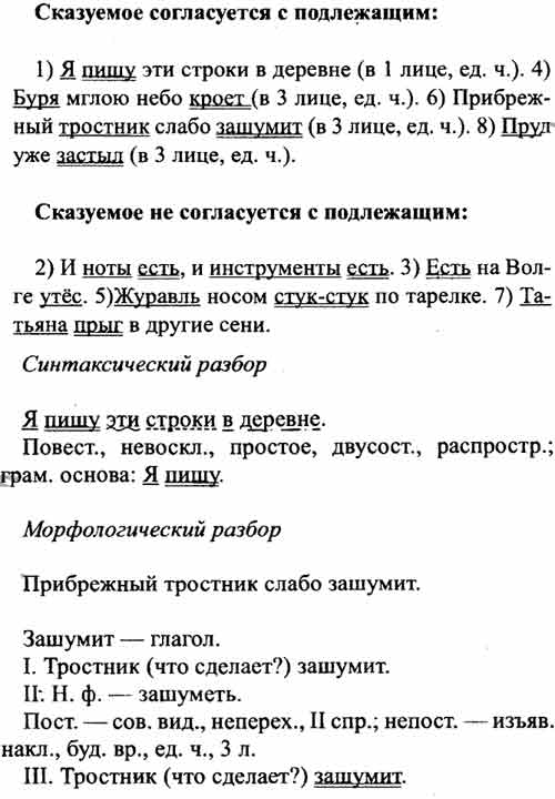 1) Я пишу эти строки в деревне.4 (Сол.) 2) И ноты есть, и инструменты есть. (Кр.) 3) Есть на Волге утёс. (Песня.) 4) Буря мглою небо кроет. (П.) 5) Журавль носом стук-стук по тарелке. (Пришв.) 6) Прибрежный тростник слабо зашумит3. (Т.) 7) Татьяна прыг в другие сени. (П.) 8) Пруд уже застыл3. (П.)