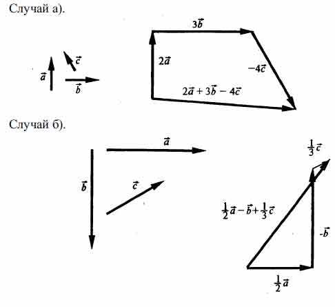 Начертите попарно неколлинеарные векторы а, b и с. Постройте векторы: а) 2а + 3b - 4с; б) 1/2а-b + 1/3с.