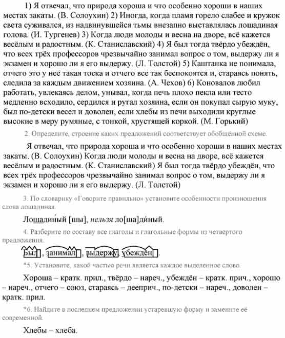 *5. Установите, какой частью речи является каждое выделенное слово. *6. Найдите в последнем предложении устаревшую форму и замените её современной.