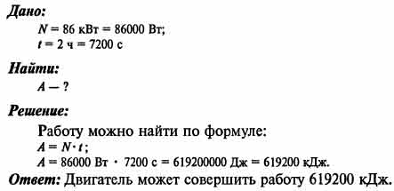 Мощность тягового электродвигателя троллейбуса равна 86 кВт. Какую работу может совершить двигатель за 2 ч?