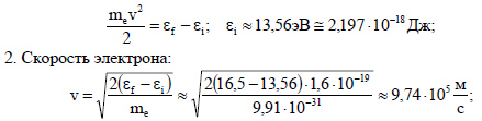 Фотон с энергией εf = 16,5 эВ выбил электрон из невозбуждённого атома водорода. Какую скорость будет иметь электрон вдали от ядра?