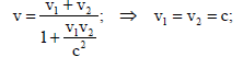 Два автомобиля движутся в одном и том же направлении со скоростями v1 и v2 относительно поверхности Земли. Чему равна скорость света от фар первого автомобиля в системе отсчёта, связанной со вторым автомобилем?
