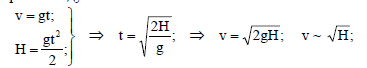 Камень свободно падает с некоторой высоты Н с начальной скоростью, равной нулю. Сопротивление воздуха мало. Скорость, которую приобретает камень, пропорциональна
