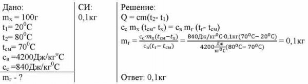 В стеклянный стакан массой 100 г, имеющий температуру 20 °С, налили воду при температуре 80 °С. Через некоторое время температура воды стала равной 70 °С. Какова масса воды, налитой в стакан?