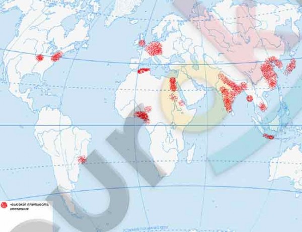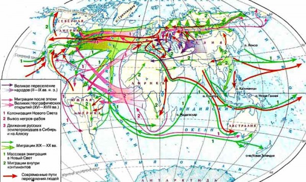 Обозначение на контурной карте ареалов высокой плотности населения, направлений миграций людей в прошлом и современные перемещения